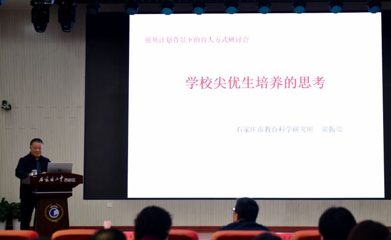 随后,原所长 常振亮 以“学校尖优生培养的实践与思考”为主题,从落实教学常规、教学管理高效、聚合力燃激情三方面分析拔尖培优这一系统工程。他指出,国家对高中教育的重视程度前所未有,要以改变高中的育人方式为改革的落脚点,以六项关键能力为突破口,把课堂教学交给学生,全面解放学生思维。