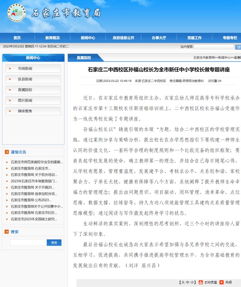 石家庄教育局官网 20230322