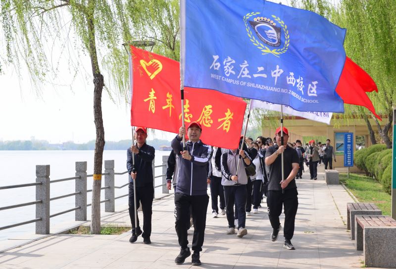 迤逦轻快的队伍行进在河畔柳堤,处处欢声笑语。同学们见证了石家庄滹沱河生态修复工程的壮美,欣赏着河畅水清,莺啼青绿的美丽河景,沉浸于人与自然和谐之中。