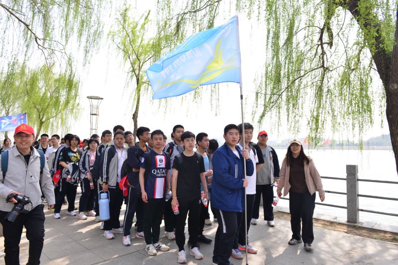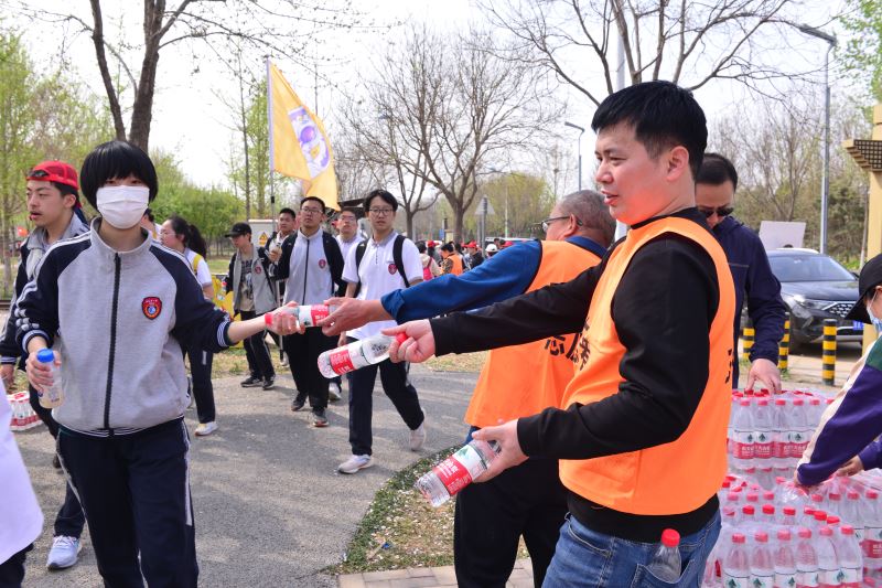 行进途中,张永泽副校长走在队伍的最前面。老师们始终与同学们一路相伴左右,精心服务