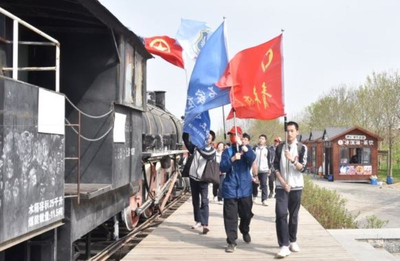 第四站:铁路情缘,同学们参观曾经的“绿皮车”,这承载着父辈梦想的绿色使者,拉来了我们生长于斯的城市,求学于斯的校园,追忆着学校与铁路共同发展进步的不解情缘。