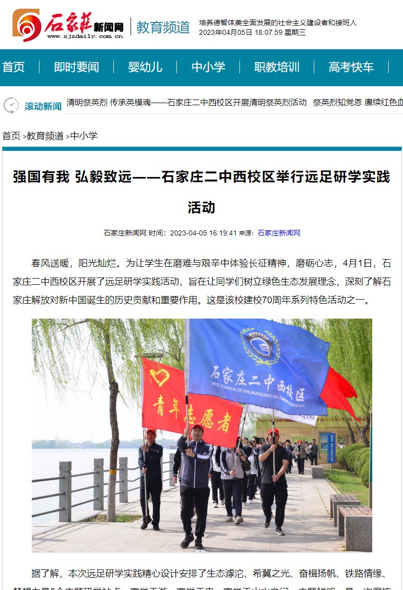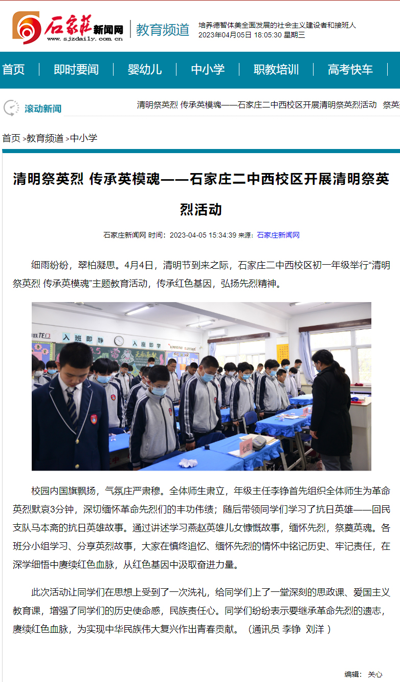 清明祭英烈 传承英模魂——石家庄二中西校区开展清明祭英烈活动 (sjzdaily.com.cn)