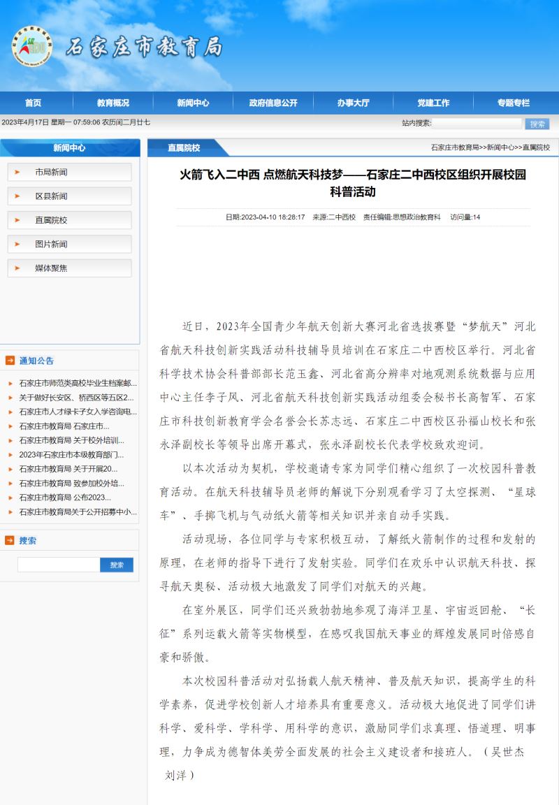 石家庄教育局官网 20230410