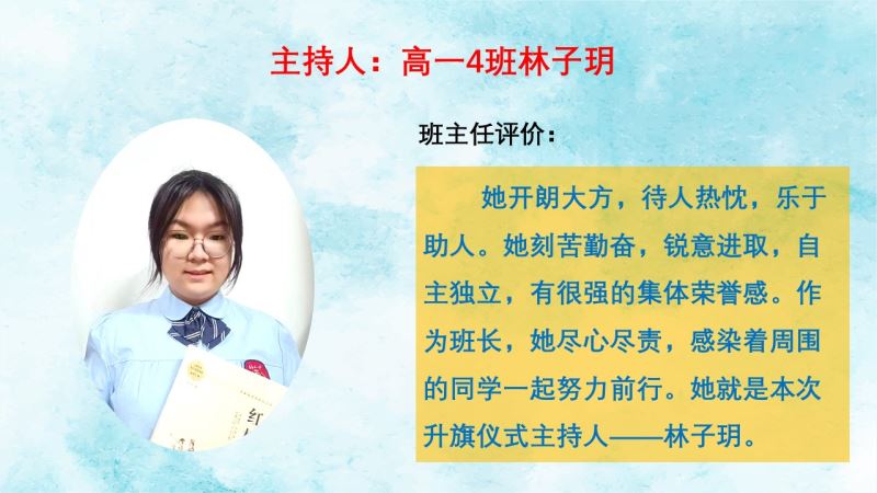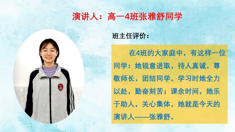大家好!我是高一4班的张雅舒。今天我演讲的题目是:致敬劳动者,礼赞新时代。