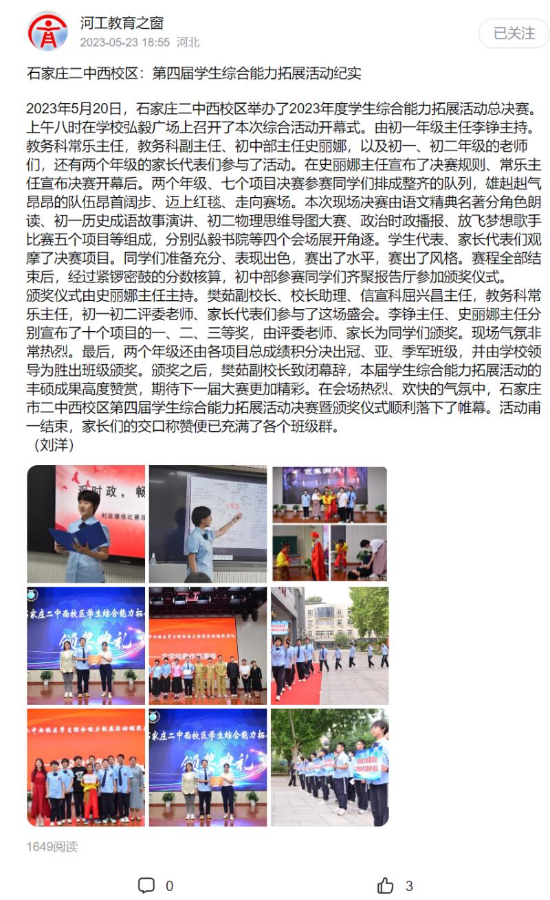 202305河工报教育之窗 市教育局官网