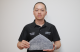 栾钰堃展示登顶成功的纪念石板。新华社记者 杨帆 摄