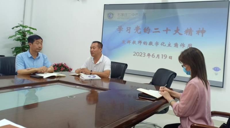 2023年6月19日,二中西校区组织全体中层以上党员干部开展专题政治学习,深入学习 《发挥教师的数字化主角作用》一文。