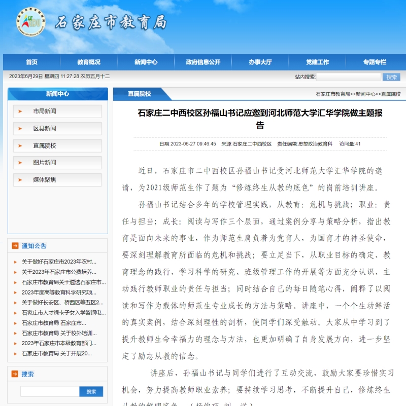20230627 石家庄日报客户端 市教育局官网