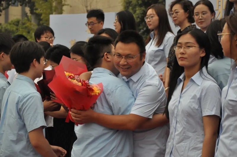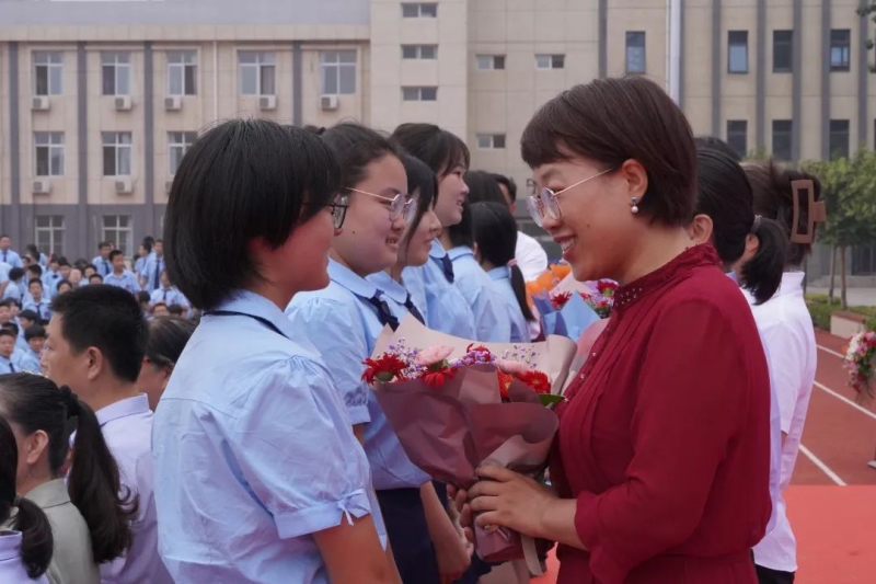 可敬可爱的班主任以学校发展为己任,以崇高的信念和精神勇挑重担,将辉煌融入平凡和坚守。高中27位年级主任、班主任,初中23位年级主任、班主任老师登台,接受班长的献花。