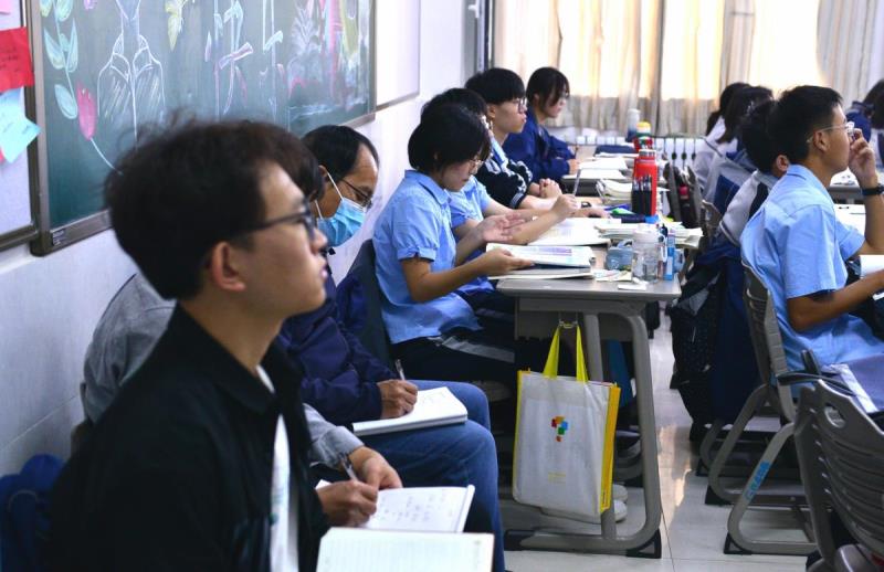 专家引领,聚焦课堂,2023年10月9日,石家庄市教科所高中各学科教研员在李慎主任带领下深入石家庄二中西校区,把脉课堂,听课指导。