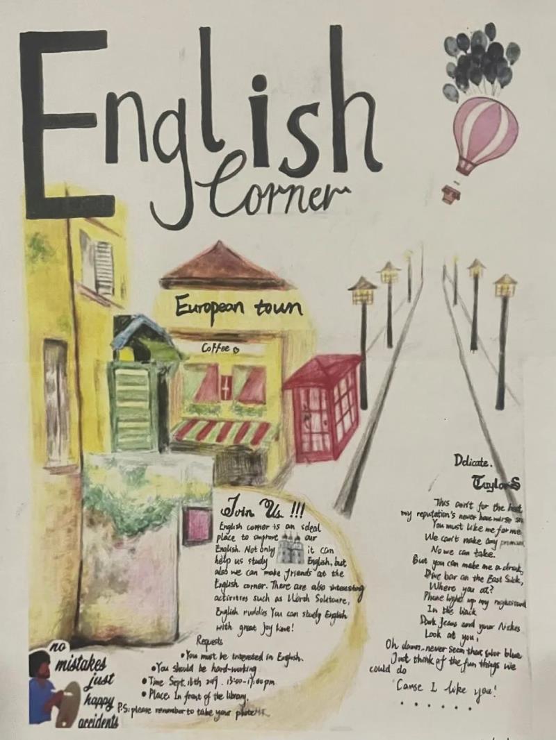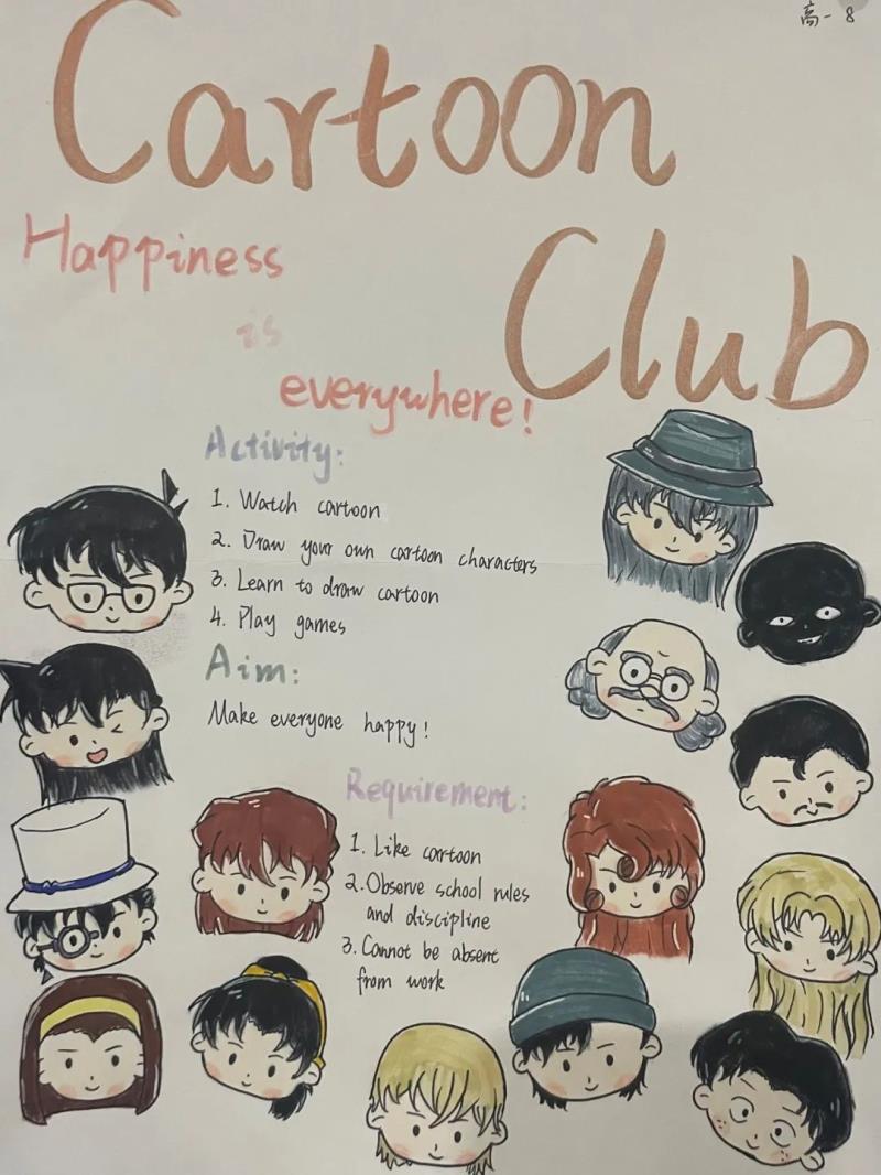 本次海报展中全体高一年级的同学们积极动手,自主设计、书写描绘,尽展才华。他们把俱乐部的一些创意想法与英语相结合,不仅锻炼提高了动手能力和综合运用英语知识的能力,还在活动中体会到了英语创作的乐趣。