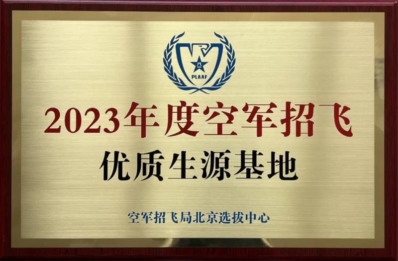 2023年学校苏祈赫、王可豪两名同学录取为空军飞行学员,被中国人民解放军空军招飞中心授予2023年空军招飞“优质生源基地”荣誉称号。