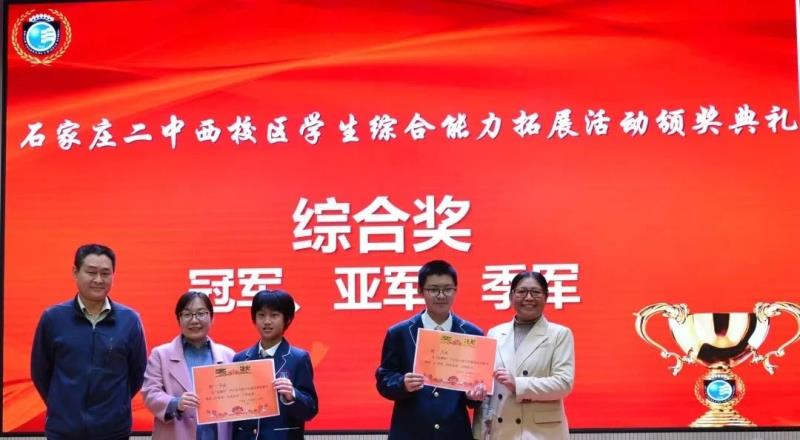 赛程全部结束后,经过紧锣密鼓的分数核算,初一、初二年级参赛的同学们齐聚报告厅,参加随后举行的“星耀杯”学生综合能力拓展项目颁奖仪式。