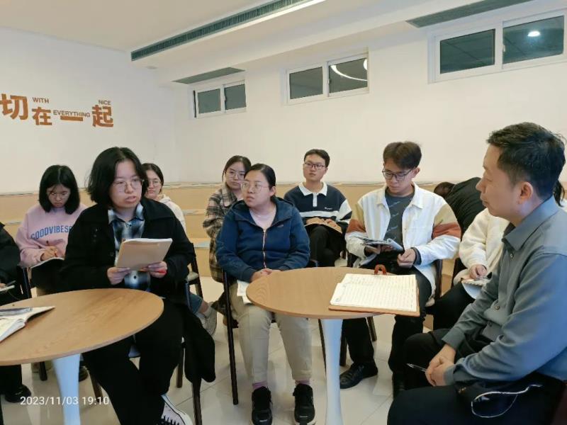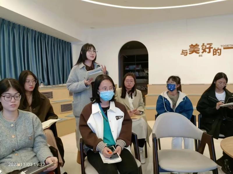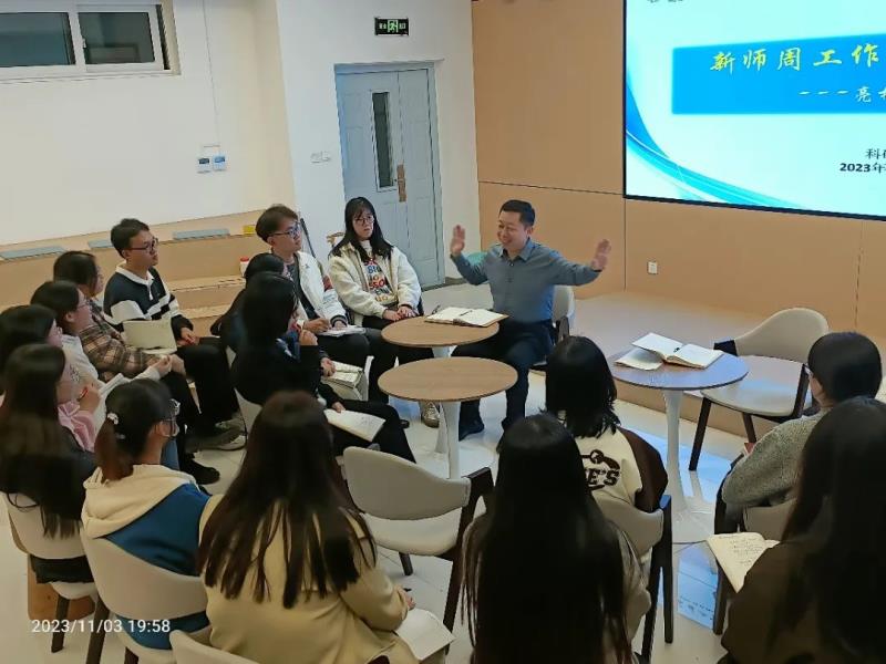展示课结束,11月3日晚上7点,在弘毅书院,李建鹏副校长、杨俊巧主任与新教师们共聚一堂,新老师们总结反思,认真谈听课、作课、评课中最大的收获和感悟。