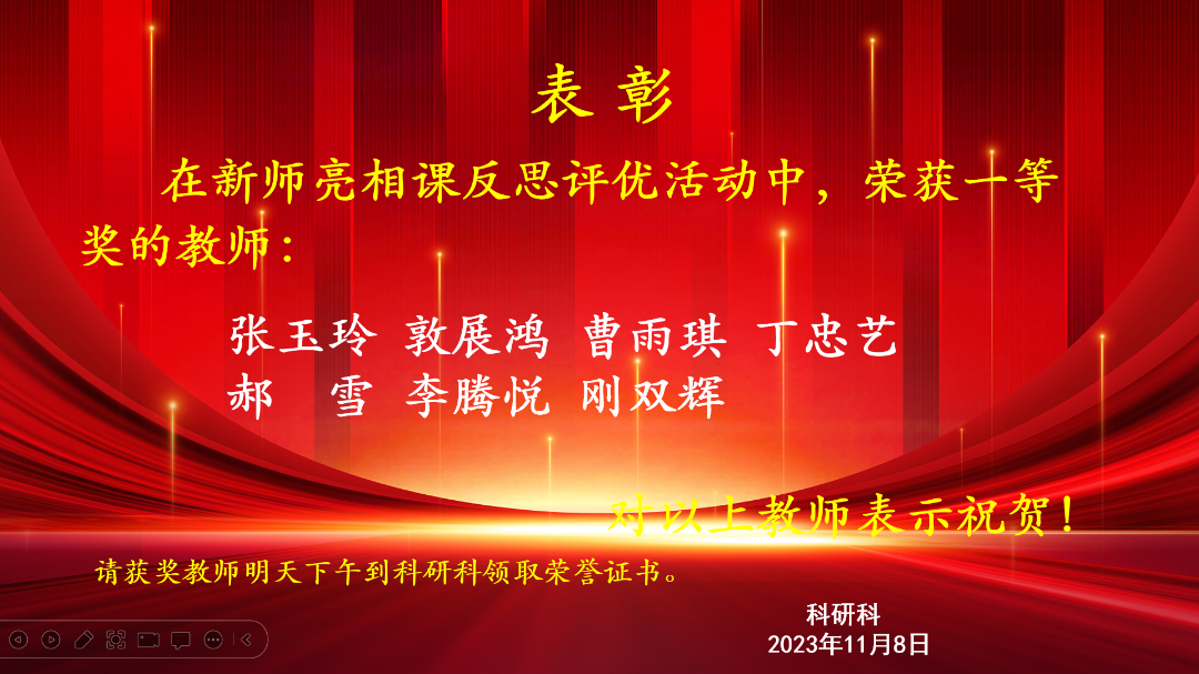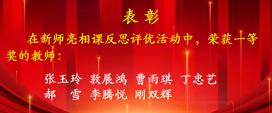 教有所得,研有所获,为了让新教师深刻反思从备课磨课到展示评课过程中总结经验,提炼收获,开展亮相课反思评优活动。获奖名单如下: