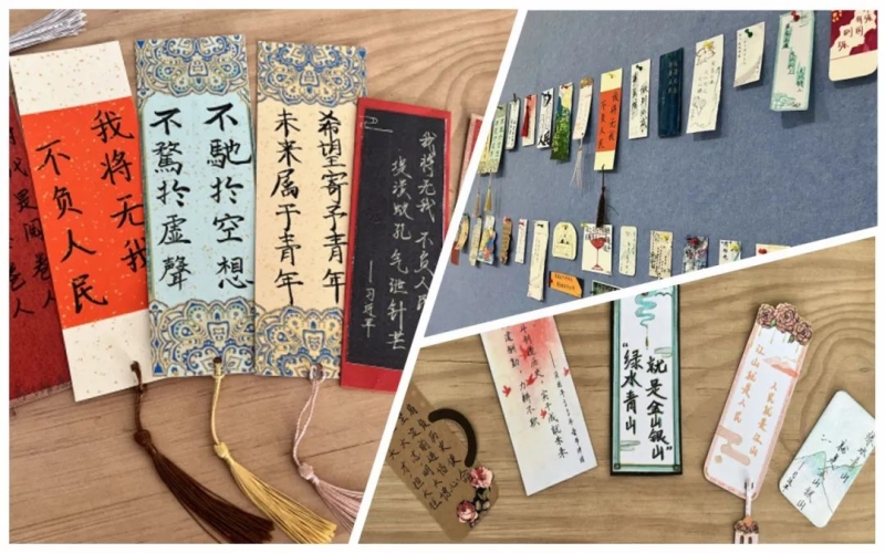 同学们将摘录的“习语”金句制作成精美的书签,在年级进行交流展示,同学们纷纷驻足欣赏,从这些文字中感受“习语”金句的力量,更好地滋养二西学子的心灵。一枚枚书签构思新颖、线条流畅、色彩丰富,凝聚了同学们的心血,呈现了同学们的奇思妙想,也让同学们从中增长学识,诠释着他们对“习语”语录的浓厚兴趣和热爱,让我们一起签收这些小美好吧!