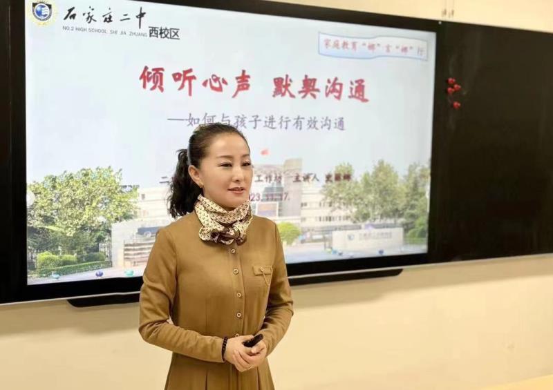 家庭是孩子的第一所学校,家长是孩子的第一任教师,但许多初为人父母的家长困顿于难与孩子有效沟通的苦恼之中,亟待关于家庭教育的指导和帮助。为宣传普及家庭教育知识,传播先进家庭教育理念,科学指导建立和谐亲子关系,11月17日下午,石家庄二中西校区教务科副主任、初中部主任史丽娜老师受邀走进河北医科大学第二附属医院,开展了题为“倾听心声 默契沟通”的公益性家庭教育讲座,为忙碌在医疗一线的医护工作者们送去帮助。