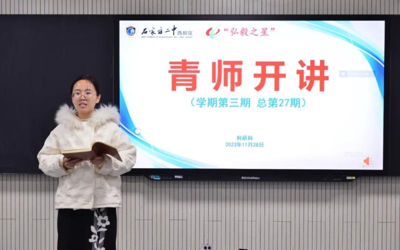 为进一步加强青年教师队伍建设,全面提升青年教师整体素质与育人水平,促进青年教师快速成长,石家庄二中西校区于11月28日在生涯规划教室举办《青师开讲》学期第三期(总第27期)活动。