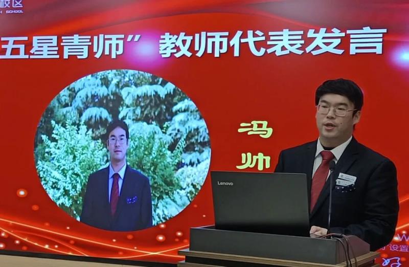 五星级青年教师代表冯帅老师发表获奖感言。