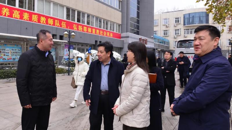 2023年12月11日下午,雪后初晴,寒风凛冽,河北省第42期校长(书记)任职资格培训班的70多名学员,在石家庄学院继续教育学院院长许现军和石家庄学院教育学院副教授陈喜文的带领下,走进二中西校区参观学习。石家庄二中西校区书记孙福山、副校长李建鹏、科研科主任杨俊巧热情接待并全程陪同。