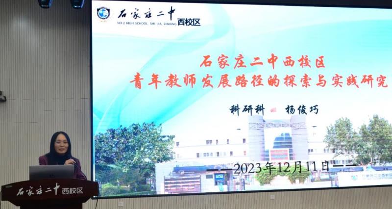 科研科杨俊巧主任为来宾做《石家庄二中西校区青年教师发展路径的探索与实践研究》主题汇报。