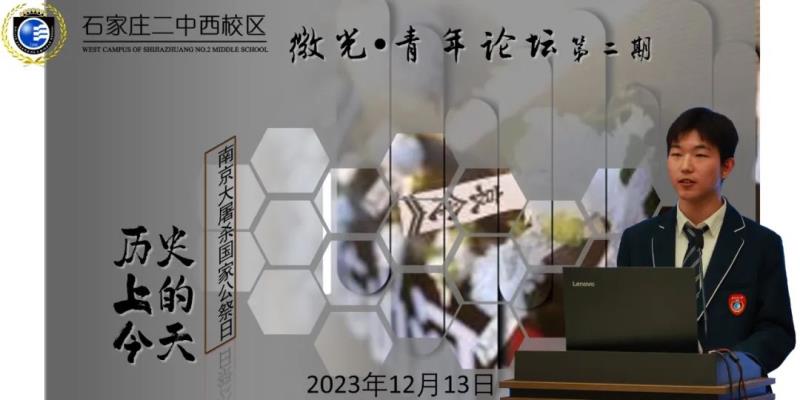 2023年12月13日,是第十个“南京大屠杀死难者国家公祭日”。为缅怀所有惨遭日本侵略者杀戮的死难同胞,缅怀为中国人民抗日战争胜利献出生命的革命先烈和民族英雄,12月13日下午,石家庄二中西校区《微光•青年论坛》第二期活动以“历史上的今天”为主题举行南京大屠杀 死难者国家公祭日活动。