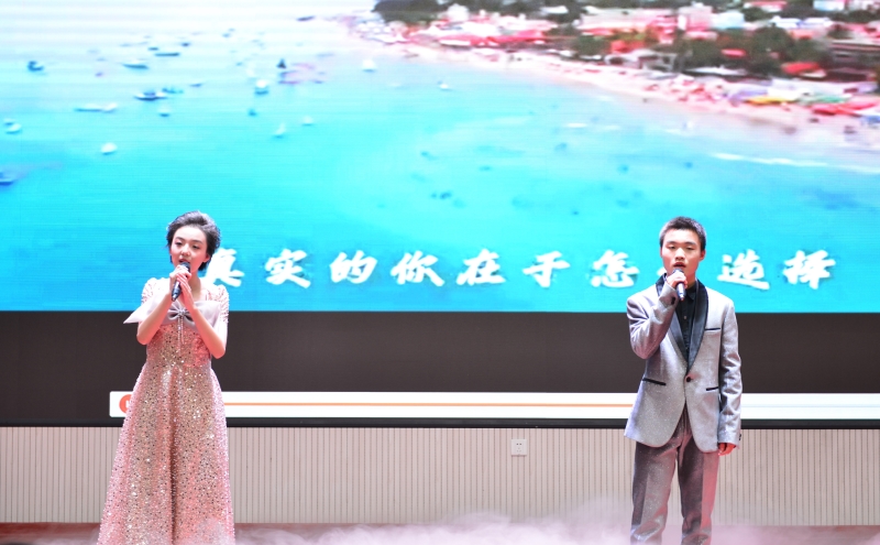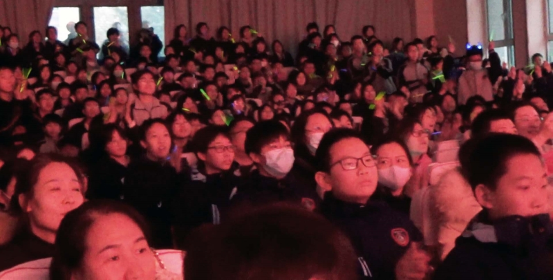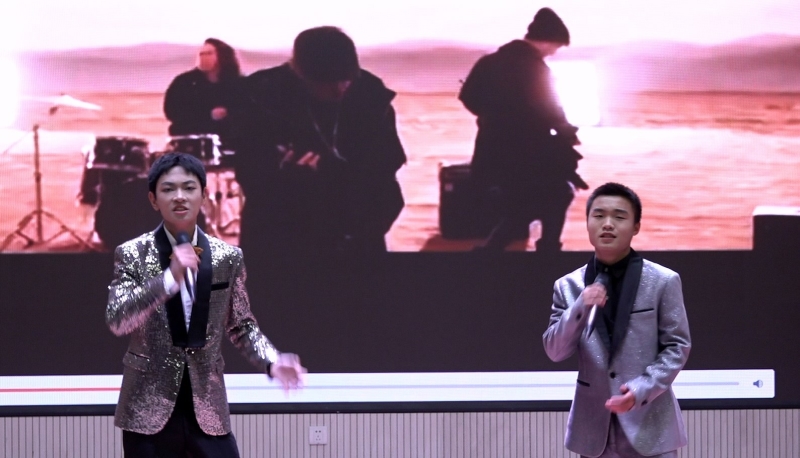 晚会精彩的表演总是惊喜满满,赵子贺老师精心准备了英文歌曲《Diamonds》,祝愿学生们的未来都像钻石一样熠熠生辉,闪闪发光,惊喜登场引发学生欢呼。