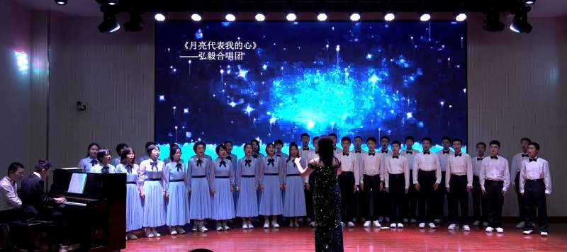 最后,由弘毅合唱团带来的《月亮代表我的心》和《如愿》为元旦迎新晚会画上了句号。在婉转动听的歌声中,全场观众不自觉加入其中,高声齐唱。愿同学们心中有太阳,眼里溢霞光,任他日月有蹁跹,终不负勇往,一生清澈明朗,所求遂如愿,在未来的路上荣光顺遂,所向披靡。