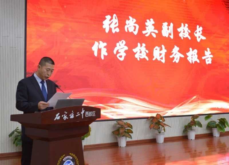 张尚英副校长作《学校财务工作报告》,学校坚持执行三重一大制度,严格落实财务管理制度。充分发挥教职工主体作用。
