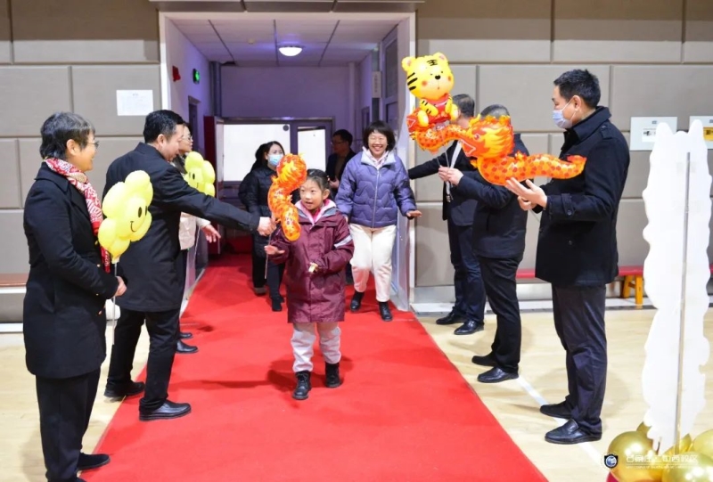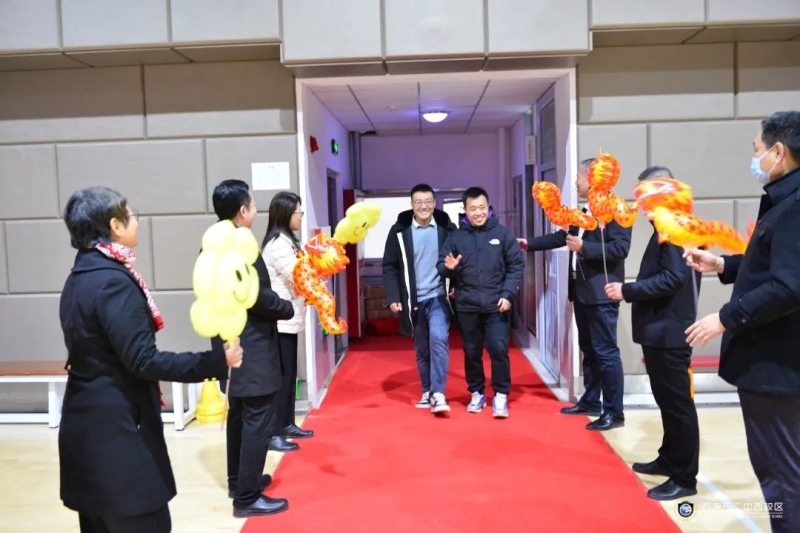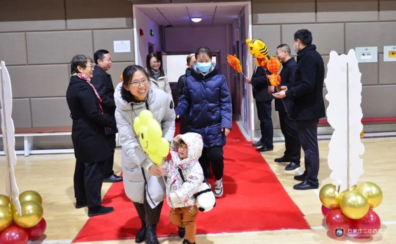 学校领导班子成员早早迎候在门口,向参加新春团拜会的年级主任、班主任、副班主任们以及家属送上新年祝福和亲切问候,体育馆大厅里洋溢着喜庆祥和的节日气氛。