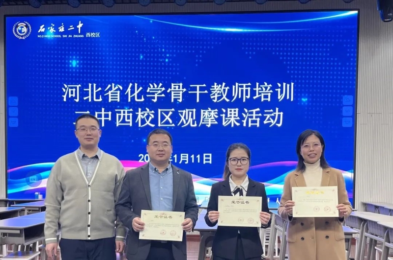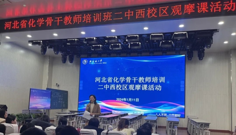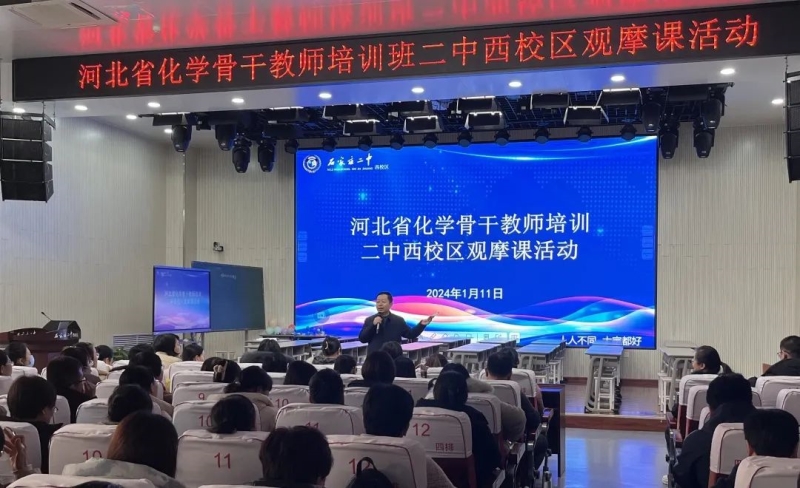 2024年1月11日下午,河北省骨干教师培训班带队导师、河北师范大学化学与材料科学学院院长孙贺略、马庆敏教授带领二百多名河北省化学骨干培训班的老师走进石家庄二中西校区开展课例观摩活动。教学副校长李建鹏、教务科主任常乐、化学组教研组长郝纬携化学组全体教师热情接待。