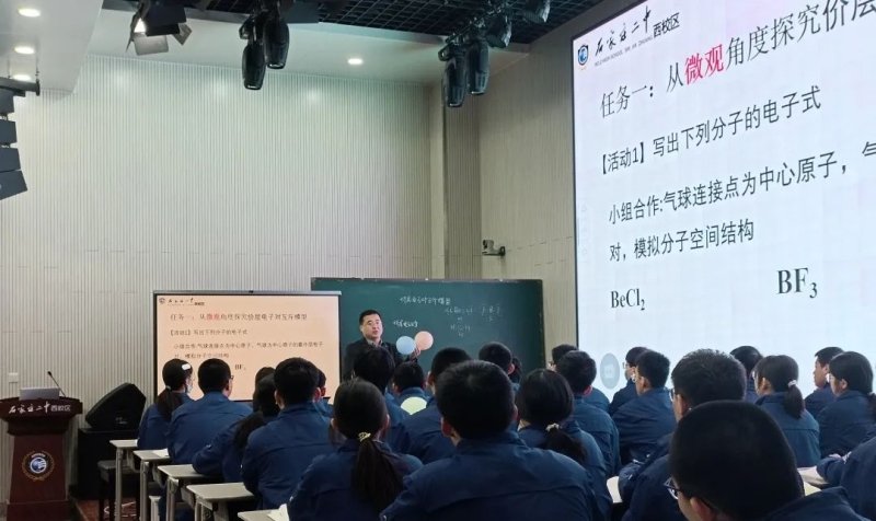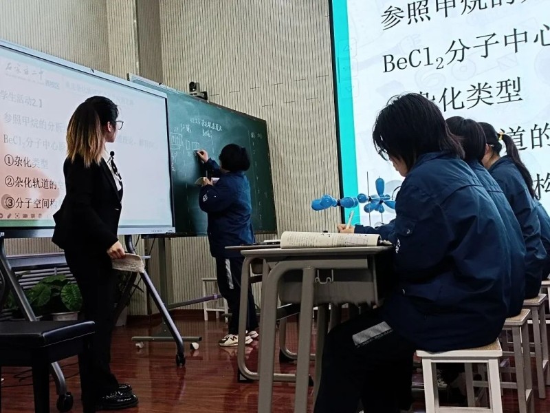 二中西校区化学组封帅、徐慧娟老师分别进行了选择性必修二第二章第二节第2课时价层电子互斥理论和第3课时杂化轨道理论新授课的课例展示。两位老师严格落实三段六环十六个字,将课本导练、讨论展示、点拨点评、小结小测融入到课堂环节中,课堂气氛高涨。