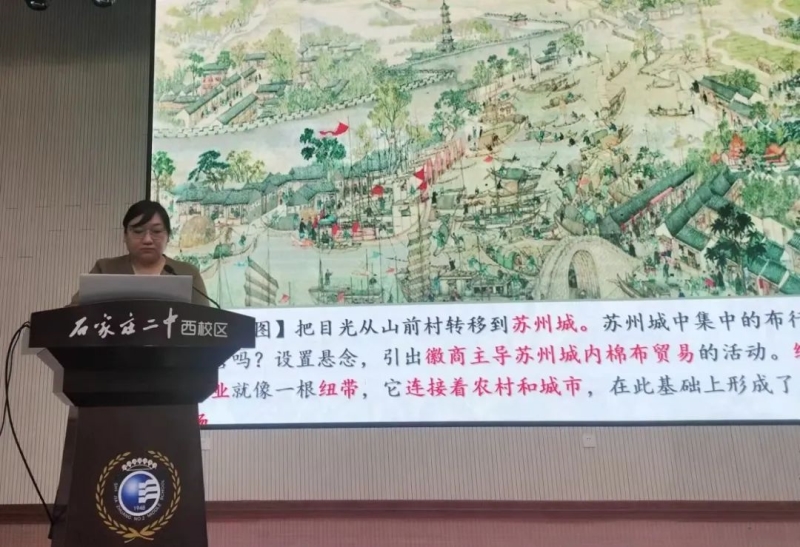 河北省评优课一等奖获得者赵华夏老师选择《古代的商业贸易》一课进行阐述,展示出深厚的教学功底和超强的专业素养。她认真贯彻新课程理念,深入挖掘教材,在课堂上充分利用图片和史料教学,立意新颖,结构科学。与会老师们纷纷表示受益匪浅。