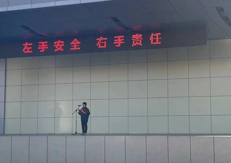 1月22日,升旗仪式上,对学生发起了“左手安全,右手责任”的校园消防安全倡议,提高全校师生消防安全意识。