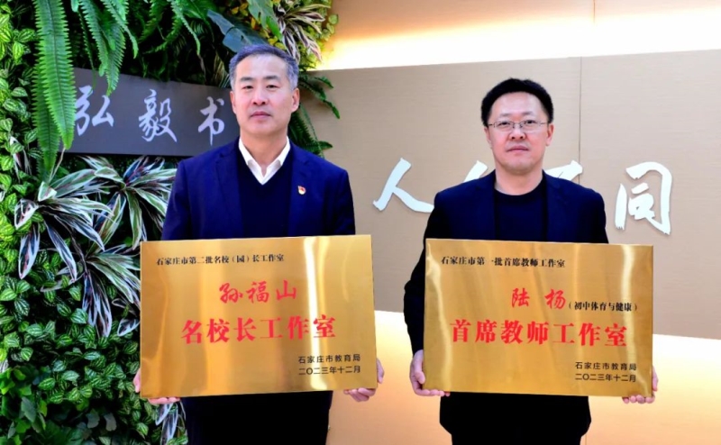 石家庄二中西校区孙福山书记和陆杨老师同时分获名校长和首席教师工作室授牌。