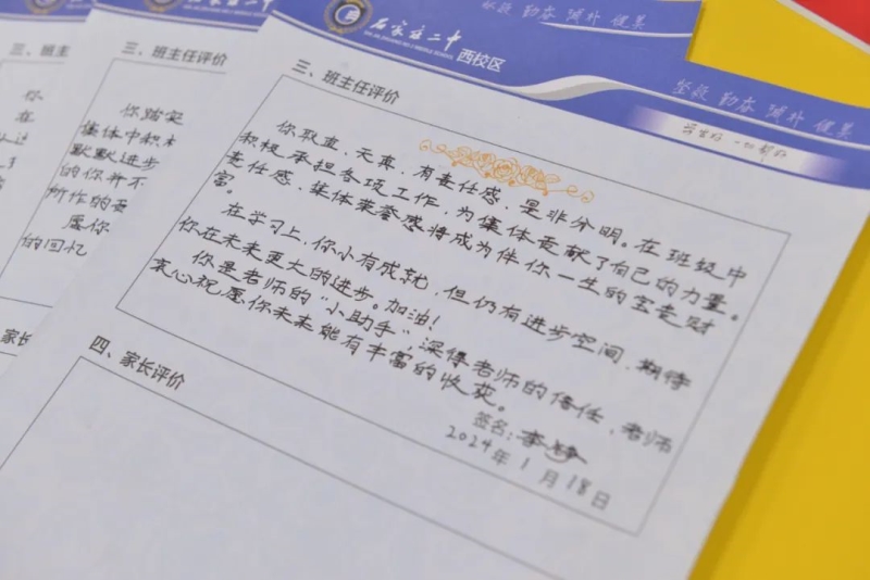 期末评语,不仅是一份礼物,更是一次教育的契机,是学生心灵的航标。评而有度,语而有温。二中西校区的班主任们用爱意和真诚记录着学生们成长中的点点滴滴。