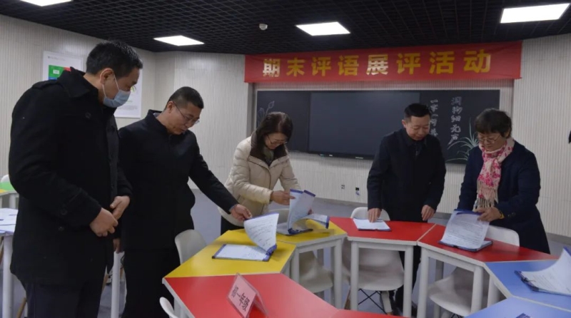 展评活动现场,校领导和老师们认真翻阅着老师们的评语。感情真挚、音韵和谐、妙趣横生的评语得到了大家的高度赞扬。