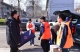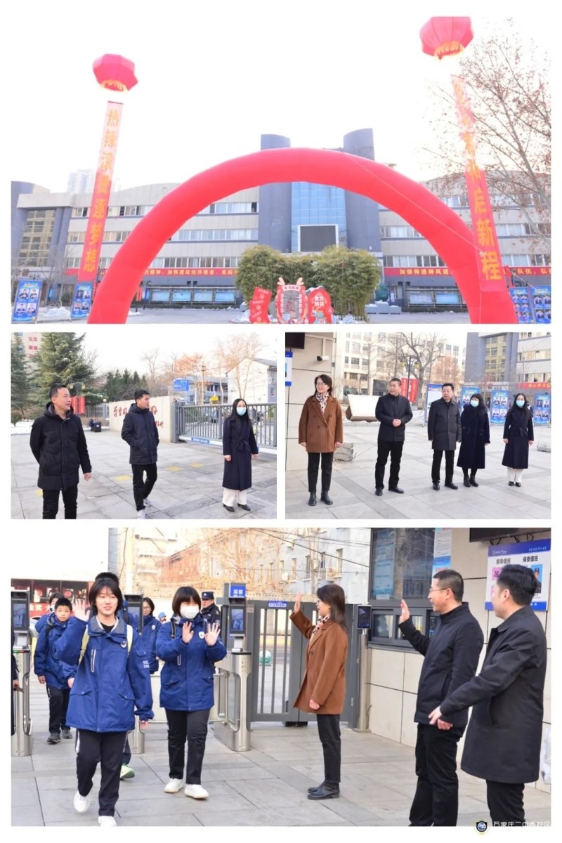 学校领导团队早早来到学校大门口,迎接满脸朝气的同学们返校。同学们欢快地在“小龙人”、“春暖花开,静待龙归”等路标处打卡,满载着希望走向教室,迎接人生的又一个成长春天。