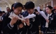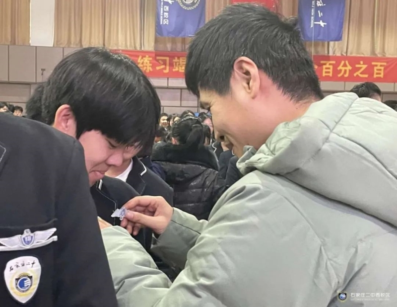 学校领导、高三老师、家长代表为高三学子佩戴青春纪念徽章