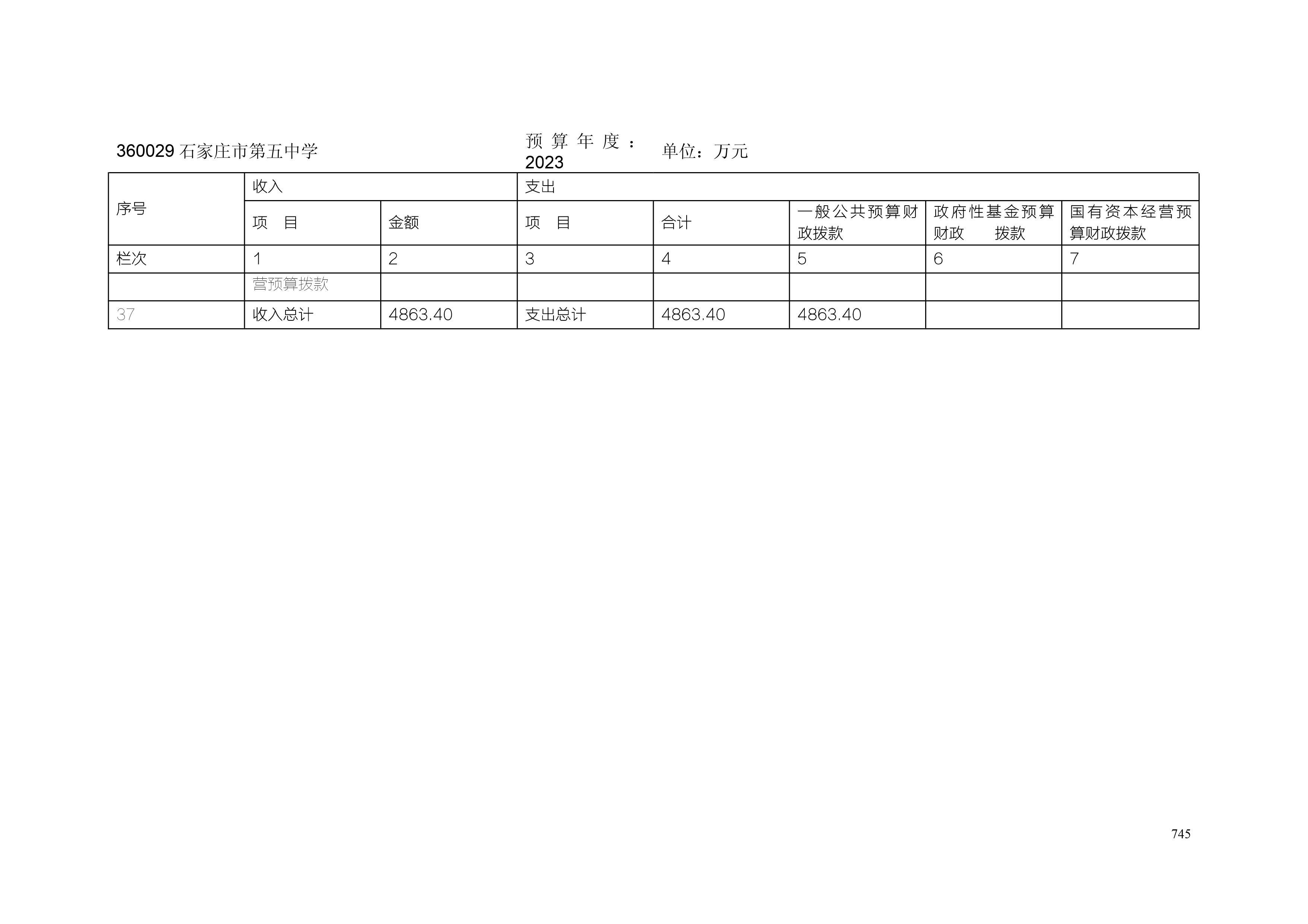 石家庄市第五中学2023年预算公开